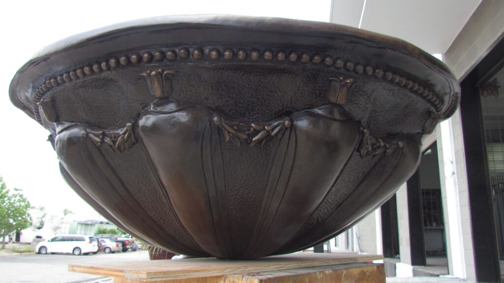 The Designers at Betz Art Foundry worked with the landscape architectural firm McDugald Steele to create these large bronze fountain bowls. We collaborated with McDugald Steele to help them realize design changes and new possibilities for their project. During design consultations, we spent time with the clients, learning about their total project vision. Our artists suggested thematic visual elements that referenced the project’s other architectural structures, and the collaboration yielded a beautiful product that integrated seamlessly into the space.
